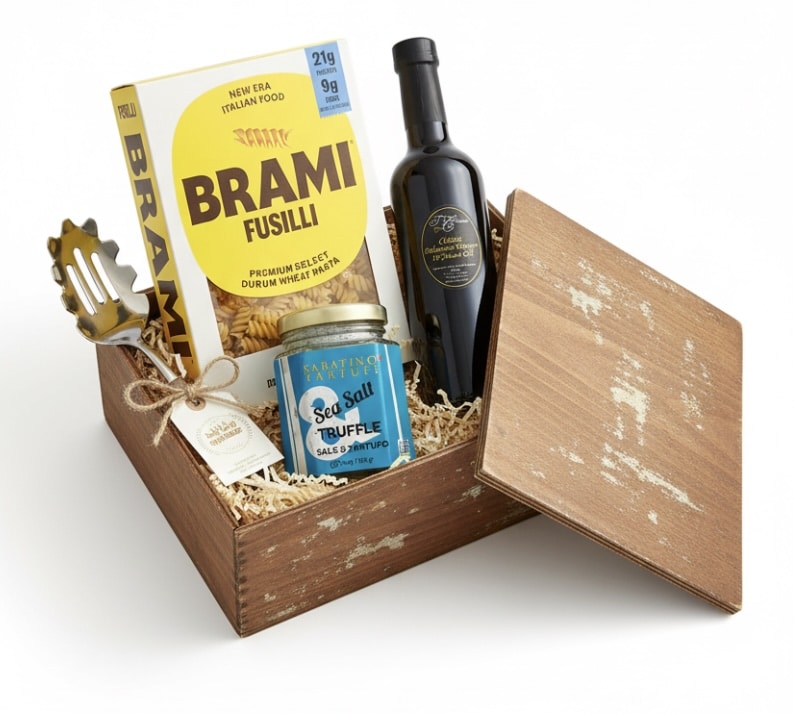 • DIY Pasta Basket: Seize a pack of this protein-rich pasta and pair it with some connoisseur fixings like California Balsamic Vinegars and a jar of Truffle Sea Salt (get 2 and make this cheese for your self!) Brami pasta is pleasant! I’m not affiliated with the model however find it irresistible for its protein content material – whereas having nice texture and taste. Why not make a pasta basket with Brami, Truffle sea Salt, and one or two vinegars from California Balsamics? What an awesome little meals reward!